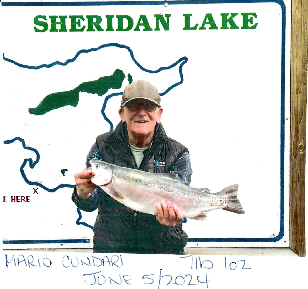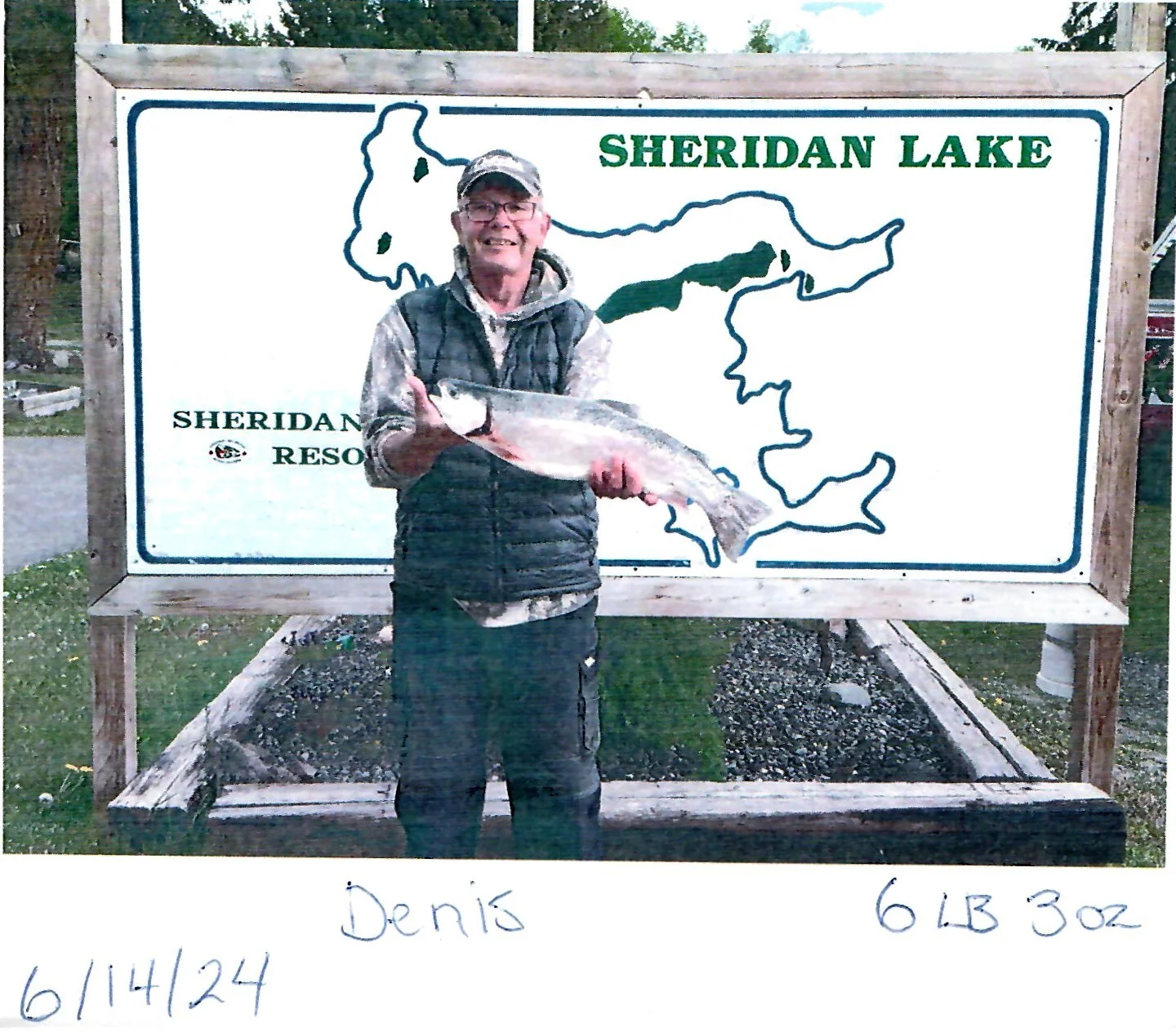 Check out our Sheridan Lake Angling Wall of Fame! You'll enjoy photos of massive rainbow trout caught on-site with sizes that often exceed 6 pounds. Pour a coffee, click the slideshow, sit back, and daydream of your next visit to Sheridan Lake. Then pick up the phone and make it a reality. We would love to post a photo of you and your monster Sheridan Lake rainbow on the wall this year!